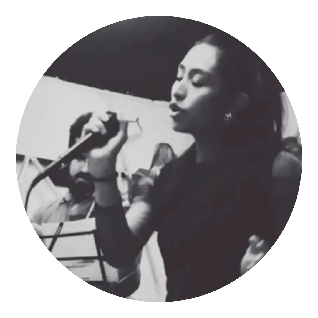 Cantante originaria de la Ciudad de México, Licenciada en Derecho y formada en técnica de bel canto desde los 17 años. Cuenta con experiencia como coralista en obras clásicas y como solista junto a orquestas, grupos de rock-pop, boleros y música versátil. Ha participado en encuentros corales nacionales e internacionales y se ha presentado como solista en distintos recintos. Su estilo fusiona la técnica del canto clásico con géneros populares, creando una interpretación auténtica y llena de personalidad.